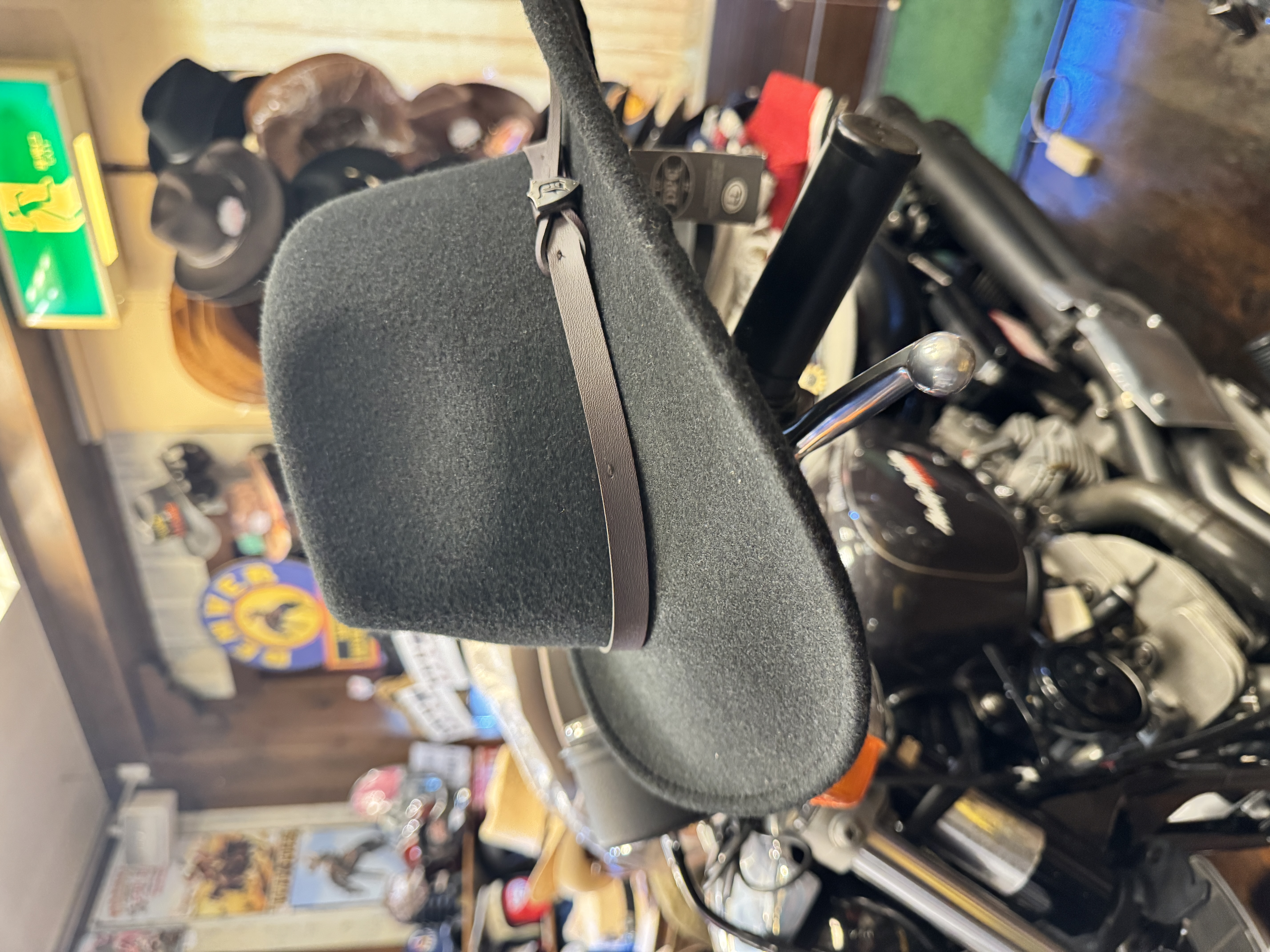 素材:牛革、アゴ紐付バイカーにも