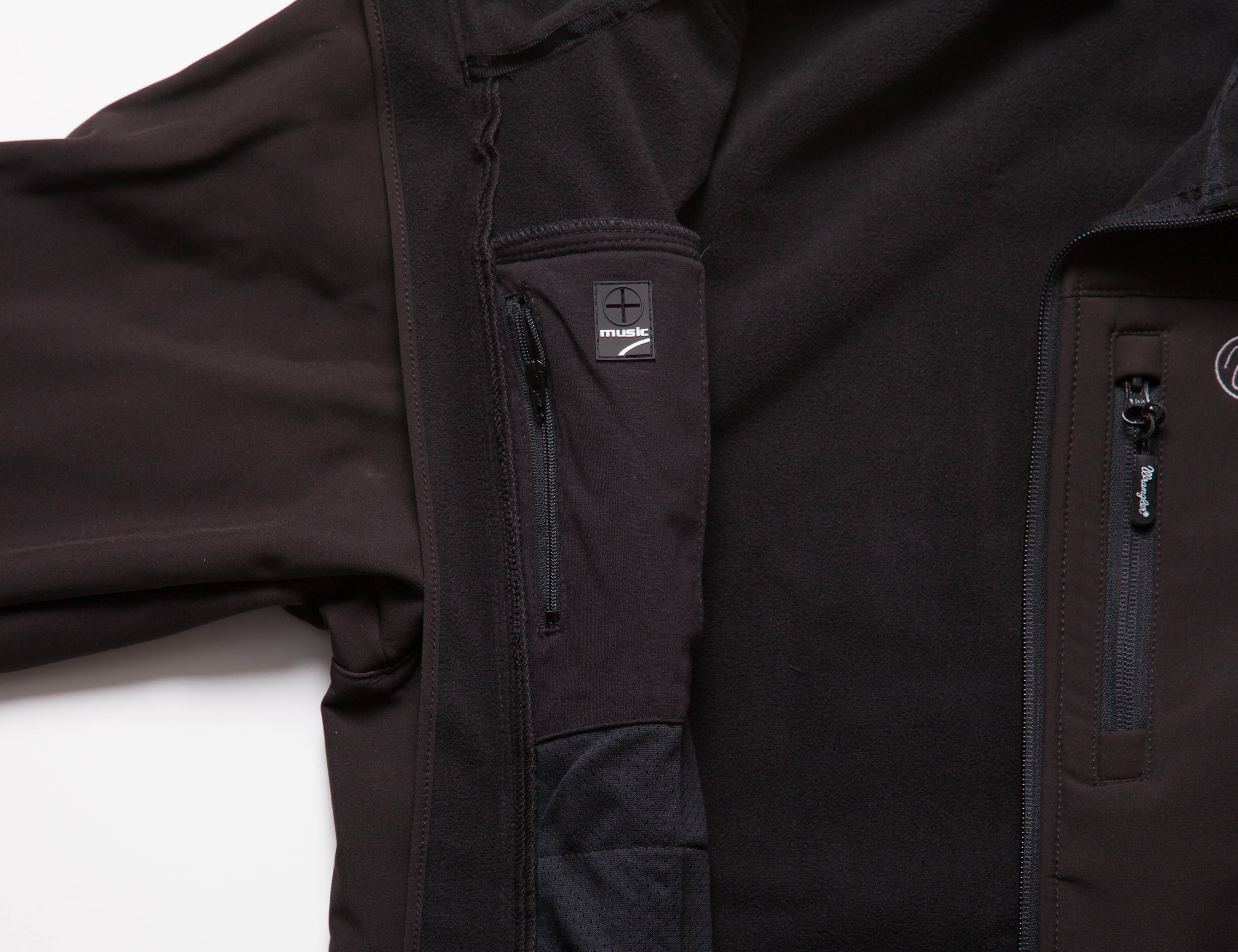 撥水、フリースライニング、ヘッドフォンポケット、アジャスタブル袖口など多機能。